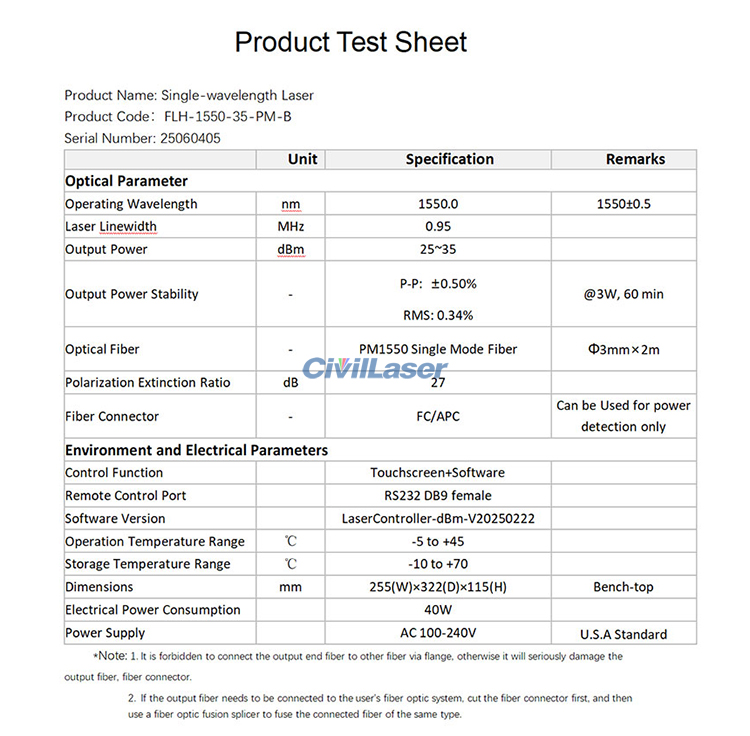 このレーザーはDFB型レーザーチップを採用し、高出力利得光路モジュールと連携することで、偏波保持型ファイバー出力による単一波長高出力レーザーを実現します。専門的に設計された駆動回路と温度制御回路により、レーザーの安全かつ安定した動作が保証され、スペクトルと出力は長期にわたって安定しています。モジュール式パッケージはコンパクトな構造で、ユーザーシステムへの統合が容易で、エンジニアリングアプリケーションにも適しています。