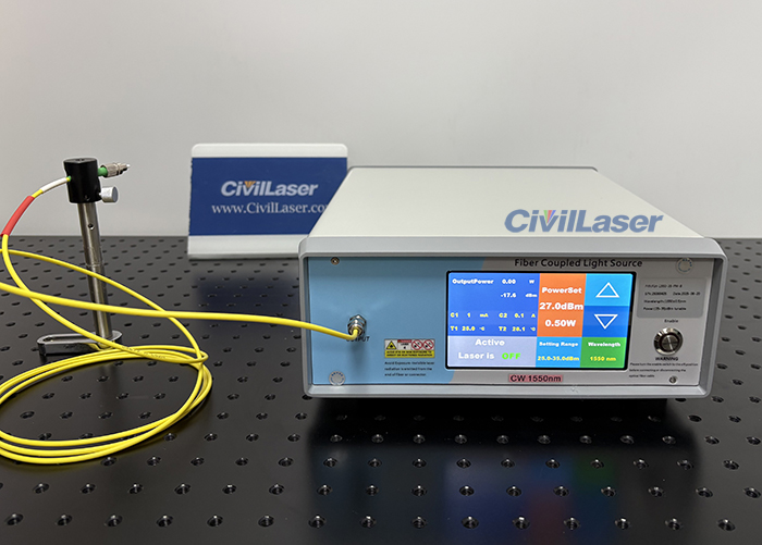 これは1550nmファイバー結合レーザーです。最新のタッチスクリーン技術を採用し、偏波保持ファイバー出力に接続されています。出力は画面上で調整可能です。設定範囲は25dBm~35dBmです。また、希望する値を直接設定することも可能です。