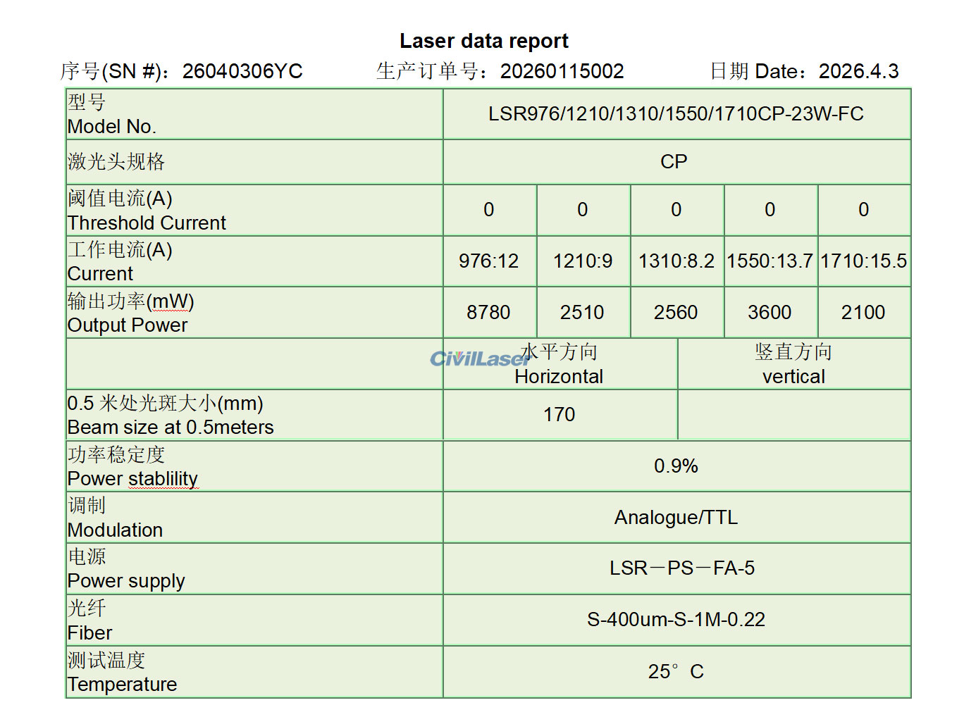 この5in1ファイバーレーザーのレーザーデータレポートはこちらです。
